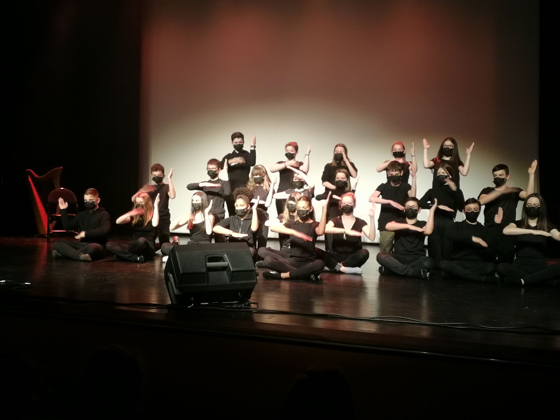 Pour terminer l’année 2021 de façon festive, l’ensemble des collégiens de Ste-Marie s’est retrouvé à la salle du Rotz vendredi 17 décembre après-midi. Les élèves volontaires, de chaque niveau, seuls ou à plusieurs, ont présenté à leurs camarades et professeurs un talent : chants en duo, danse hip-hop ou breakdance, tour de magie, sketch, piano, harpe... tous les styles étaient présents et chacun a pu apprécier les encouragements des camarades et les applaudissements en fin de représentation. Les professeurs ont clôturé ce temps fort par une danse. Un très bel après-midi qui reflète le caractère familial du collège et l’ambiance festive de cette période de fin d’année. Les mesures sanitaires ont été appliquées par tous mais cela a fait du bien à chacun de vivre un moment comme celui-ci, si rare ces derniers mois.
