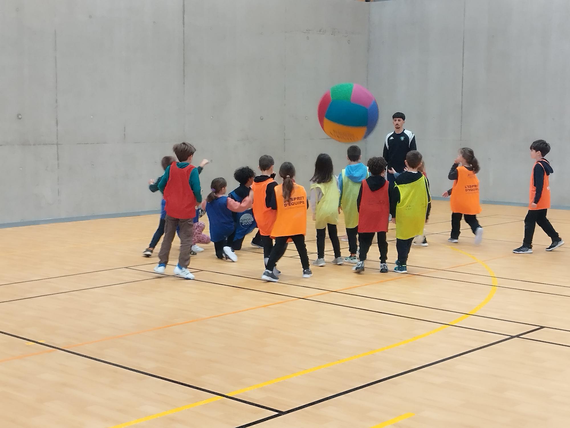La classe de CE1 s'initie au KINBALL, un sport collectif qui fait travailler l'esprit d'équipe, la coopération: ce jeu nécessite une bonne cohésion de groupe. Les apprentissages sont riches et variés.