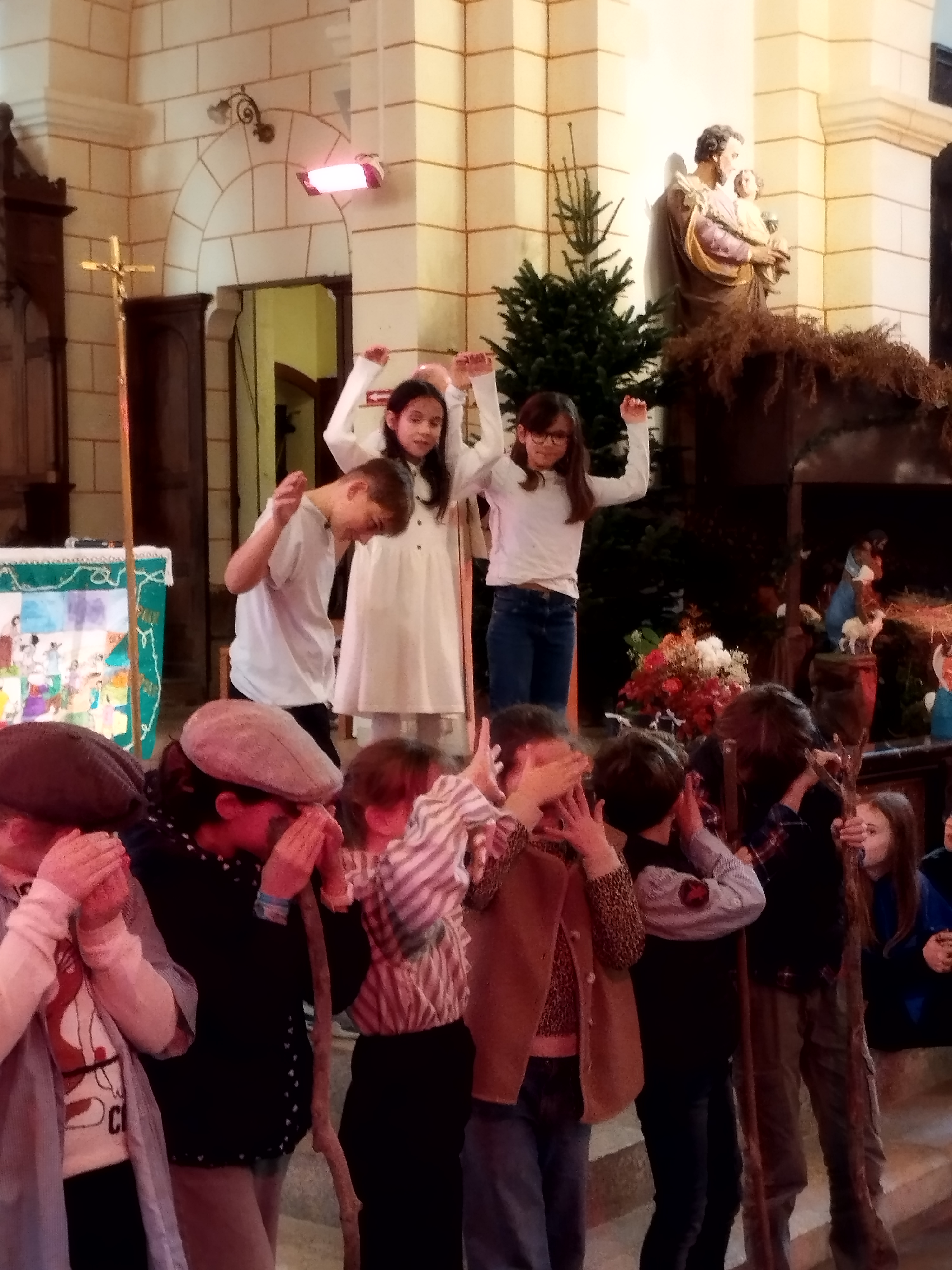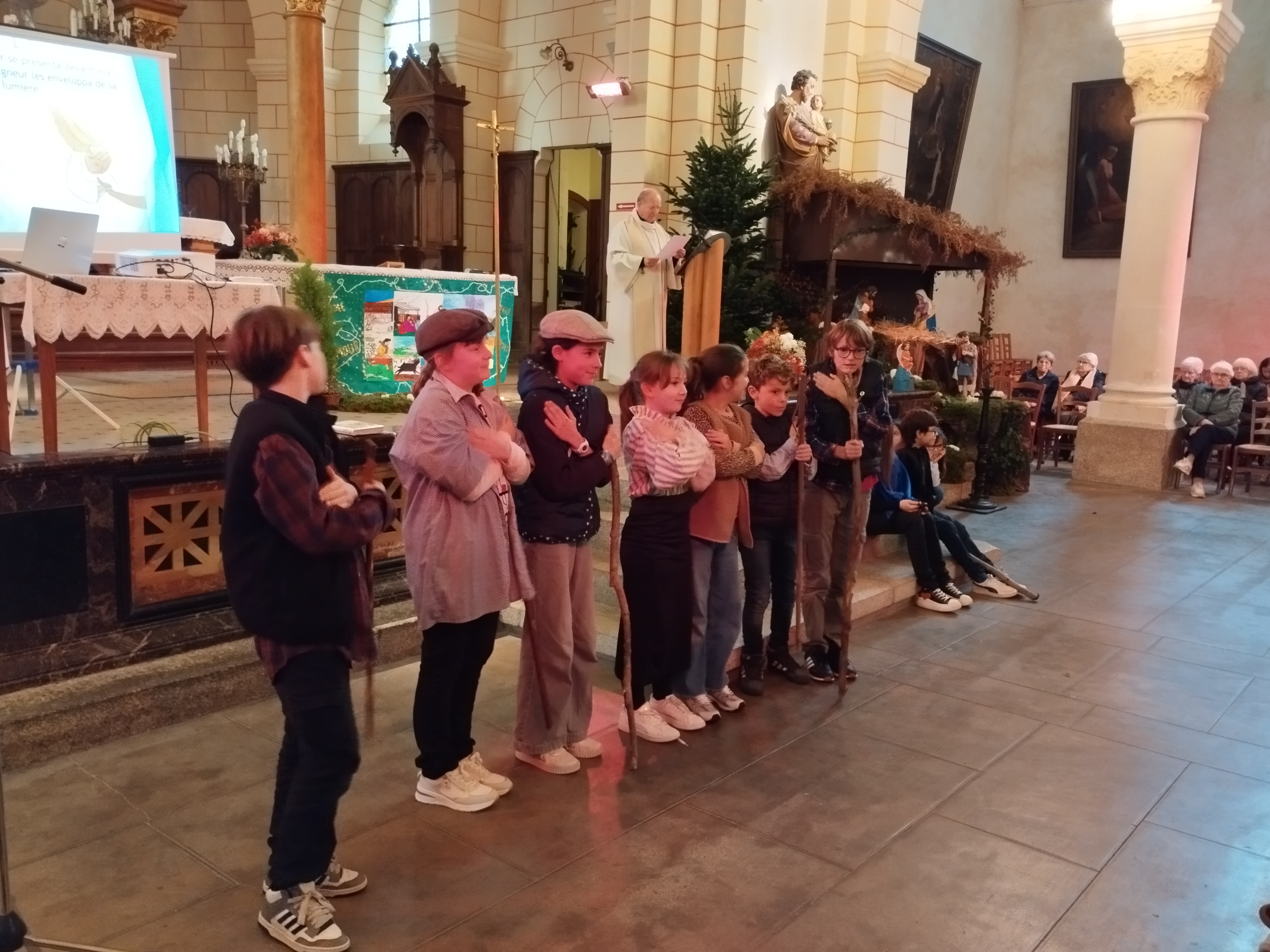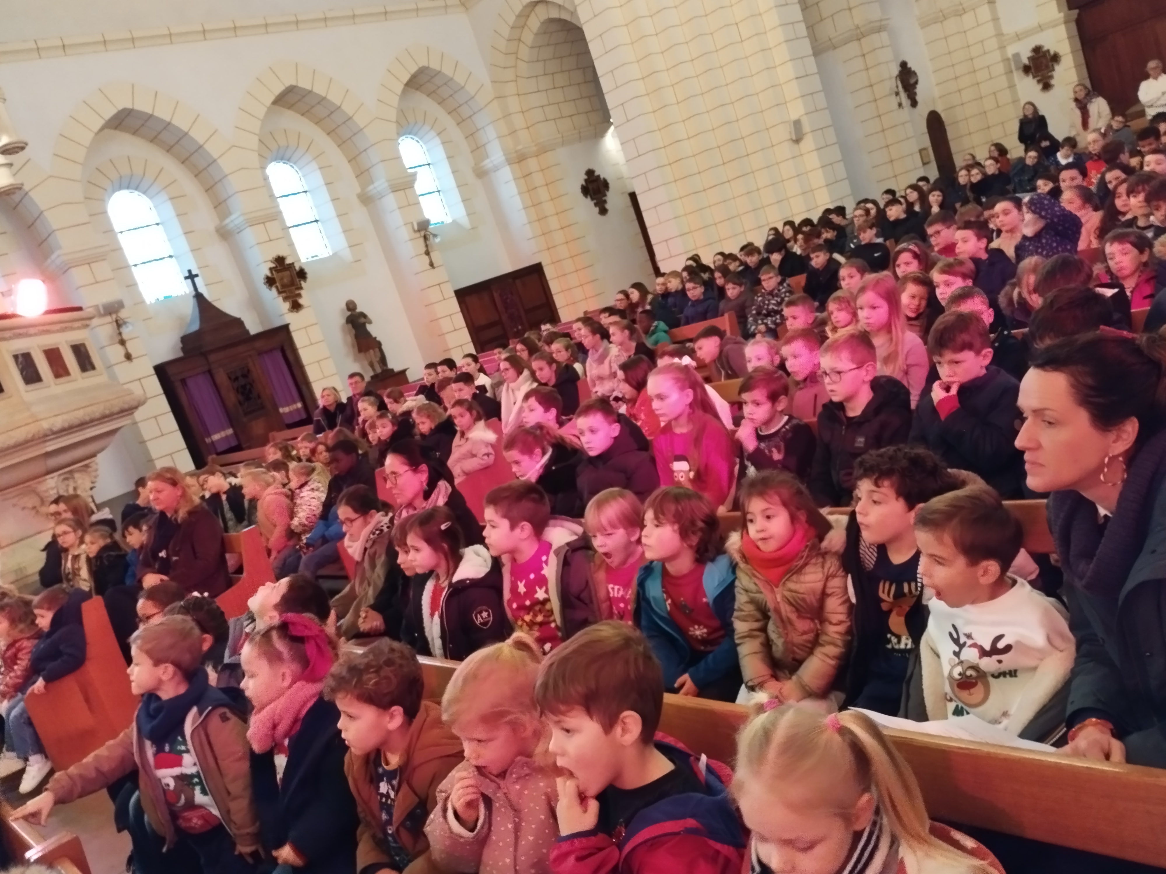 La matinée a débuté par la célébration de Noël rassemblant tous les élèves du groupe scolaire, de la Petite Section à la 3ème. Nous avons célébré ensemble l’arrivée du Prince de la Paix dans nos vies lors d’un moment à la fois recueilli et chaleureux. Les élèves de CM ont mimé l’Évangile de la Nativité tandis que les plus jeunes ont suivi la célébration avec une grande attention. La chorale de l’école a également enchanté l’assemblée par un joli chant de Noël.Nous avons eu la joie d’accueillir les résidents de l’EHPAD, venus partager avec nous ce beau temps de célébration intergénérationnelle, très apprécié de tous.
