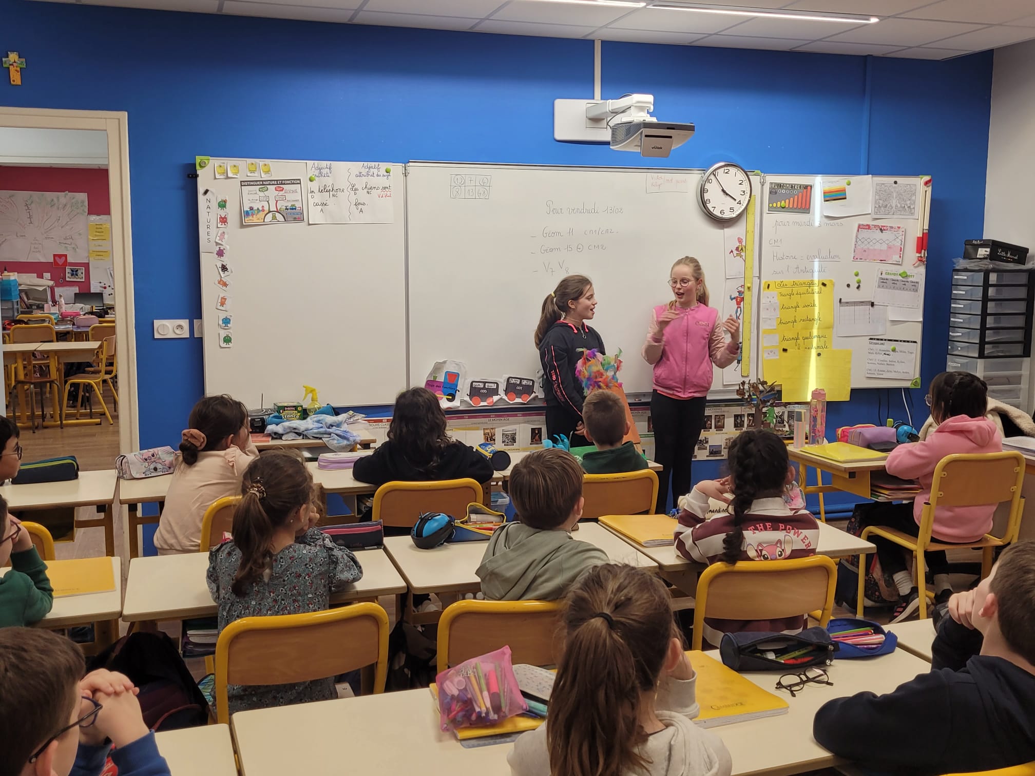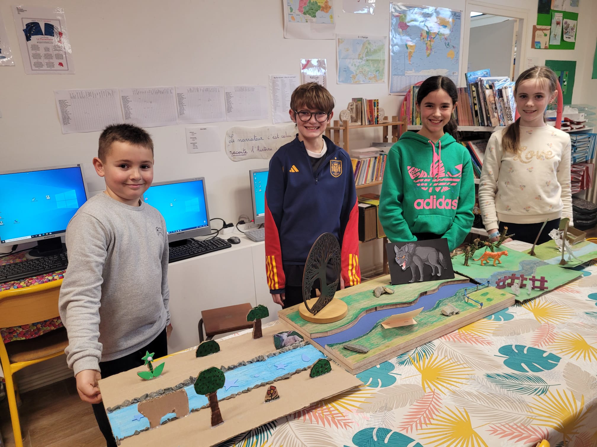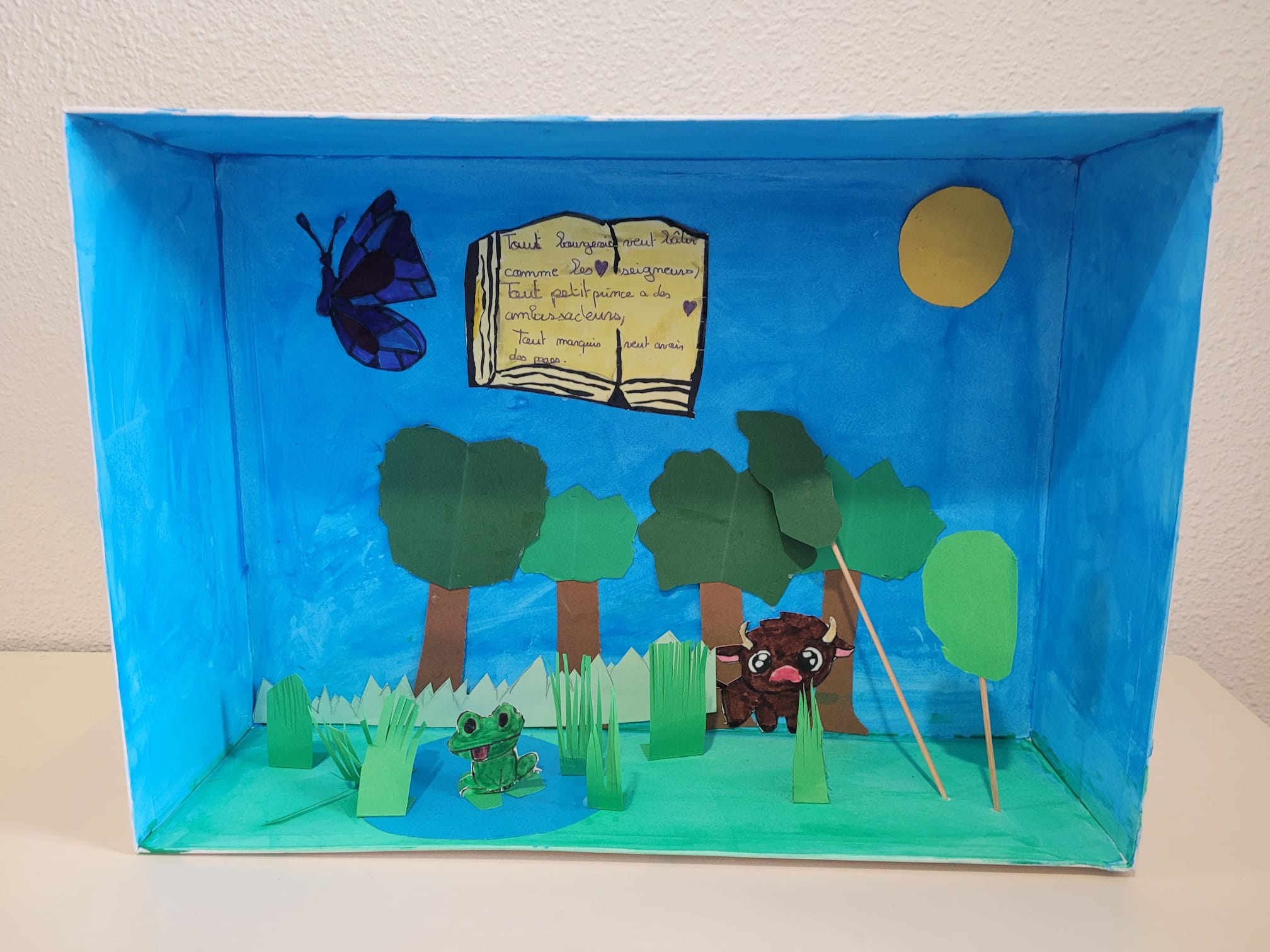 Les élèves de CM2 de l’école Sainte-Marie se sont plongés avec énergie dans l’univers de Jean de La Fontaine en apprenant l’une des quatre fables : La Grenouille qui se veut faire aussi grosse que le Bœuf, La Cigale et la Fourmi, Le Chêne et le Roseau et Le Loup et l’Agneau. Tellement motivés, certains ont même réalisé chez eux des maquettes pour illustrer leur fable, avant de la réciter en classe puis de présenter en groupe une prestation mimée devant les autres élèves. Ce beau projet a permis à chacun de s’approprier le patrimoine littéraire français, de vivre un vrai moment de partage au sein de l’école Sainte-Marie et de renforcer fièrement le label EAC.