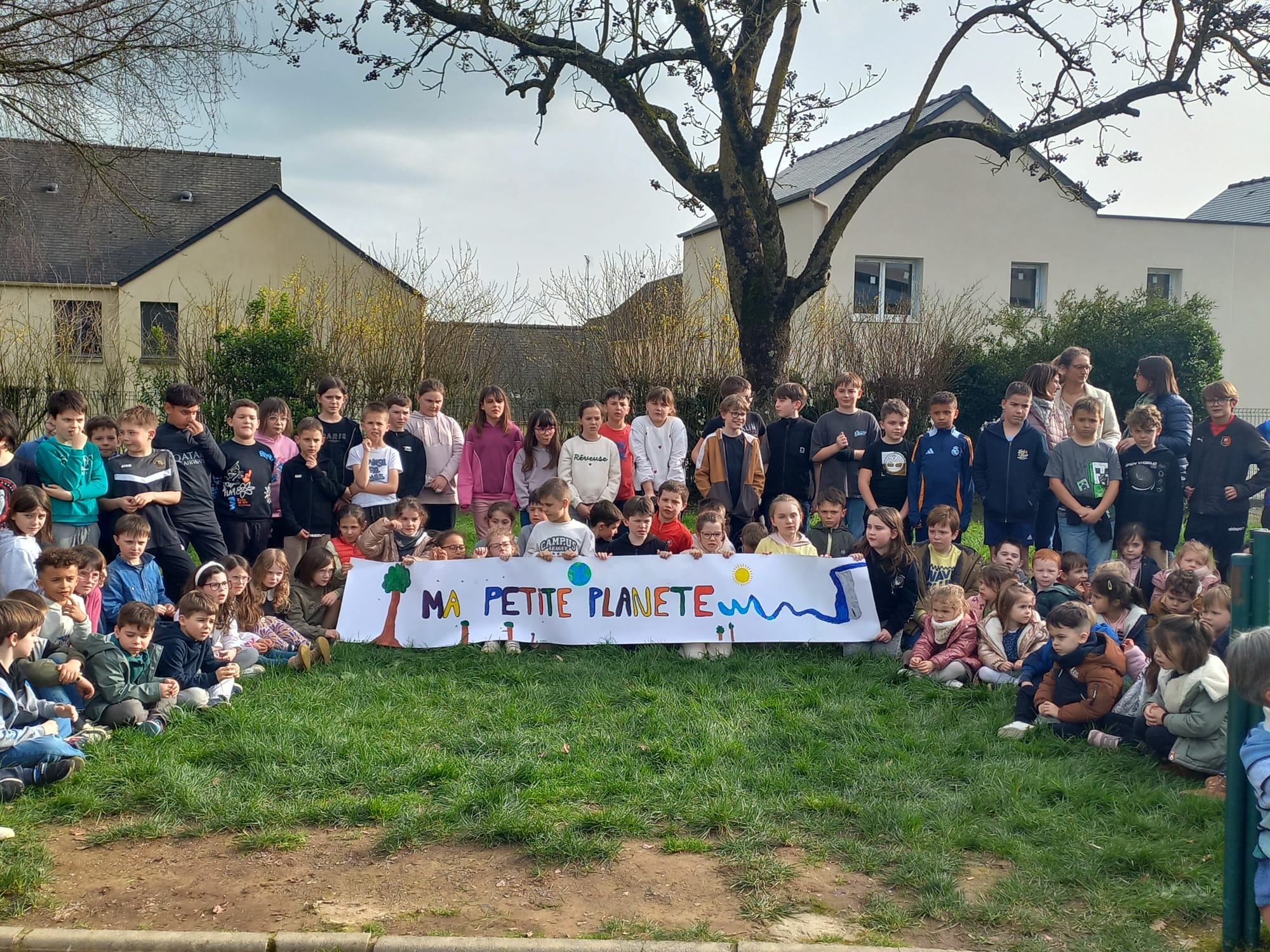Ce jeudi 5 mars toutes les classes se sont réunies pour le lancement de l'opération MA PETITE PLANÈTE.