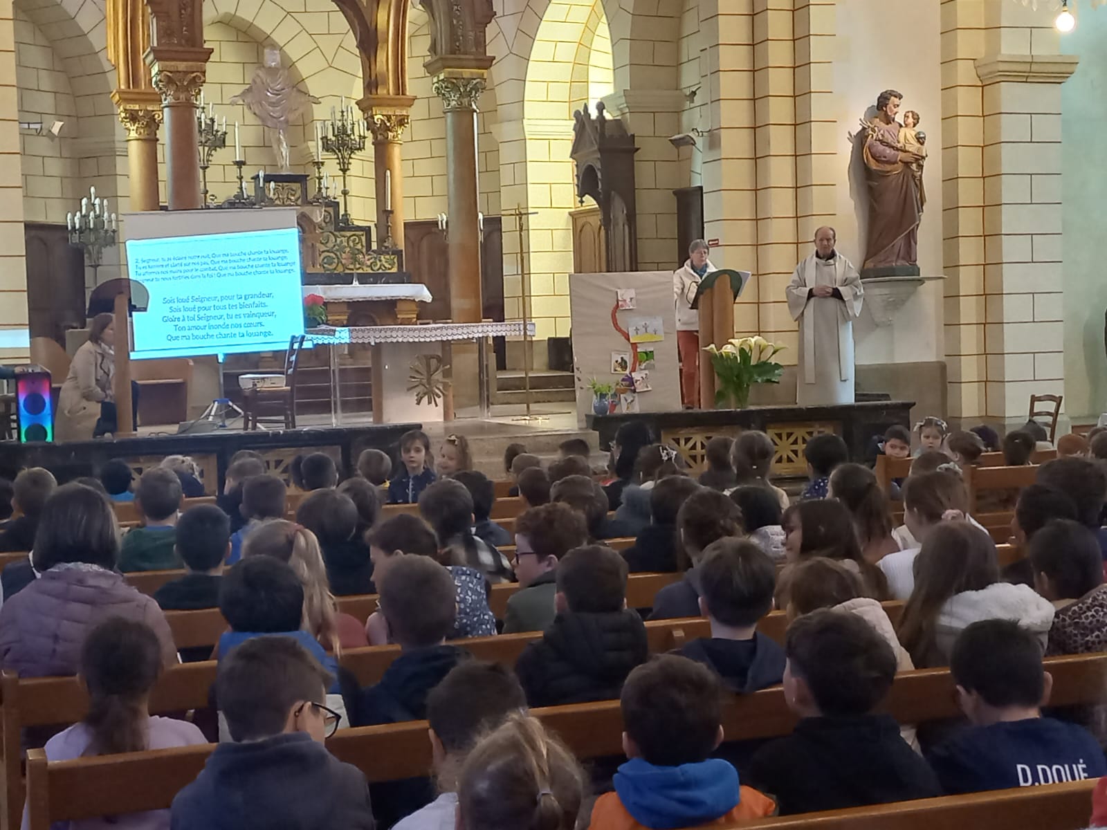 À l’occasion de la fête de Pâques, tous les élèves de l’école se sont réunis à l’église pour vivre un moment fort, placé sous le signe du partage, de la joie et de l’espérance.